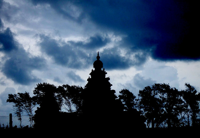 The coastline along Mahabalipuram is gradually shrinking due to the effect of sea erosion. Although conservation efforts, in the form of a wall made of rocks around the temple, have increased the lifetime of this temple, and efforts are on to save the surrounding land in a similar fashion, it is an ongoing battle. The fact that one day this temple may not exist made me turn around for a last look. And as the sun set, I watched the Nandi bulls guard the temple, and the waves froth around the whole complex, the whole making for a perfect symphony.